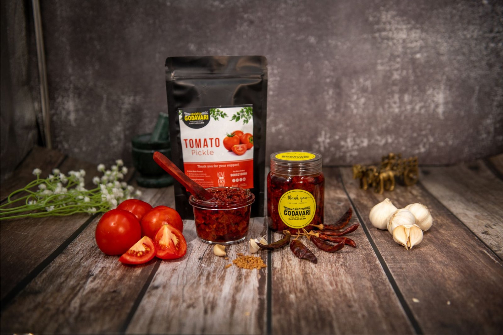 Savor the bold, tangy-spicy magic of Andhra’s beloved Tomato Pickle, lovingly made by Vasishta Godavari Pickles—where tradition meets taste.